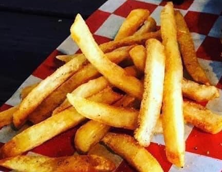 papas a la francesa, bañadas con salsa de cheso cheddar acompañados de nuestro deliciosos chili beans de la casa.