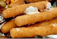 5 piezas de deliciosos dedos de queso, acompañados de salsa marinara.