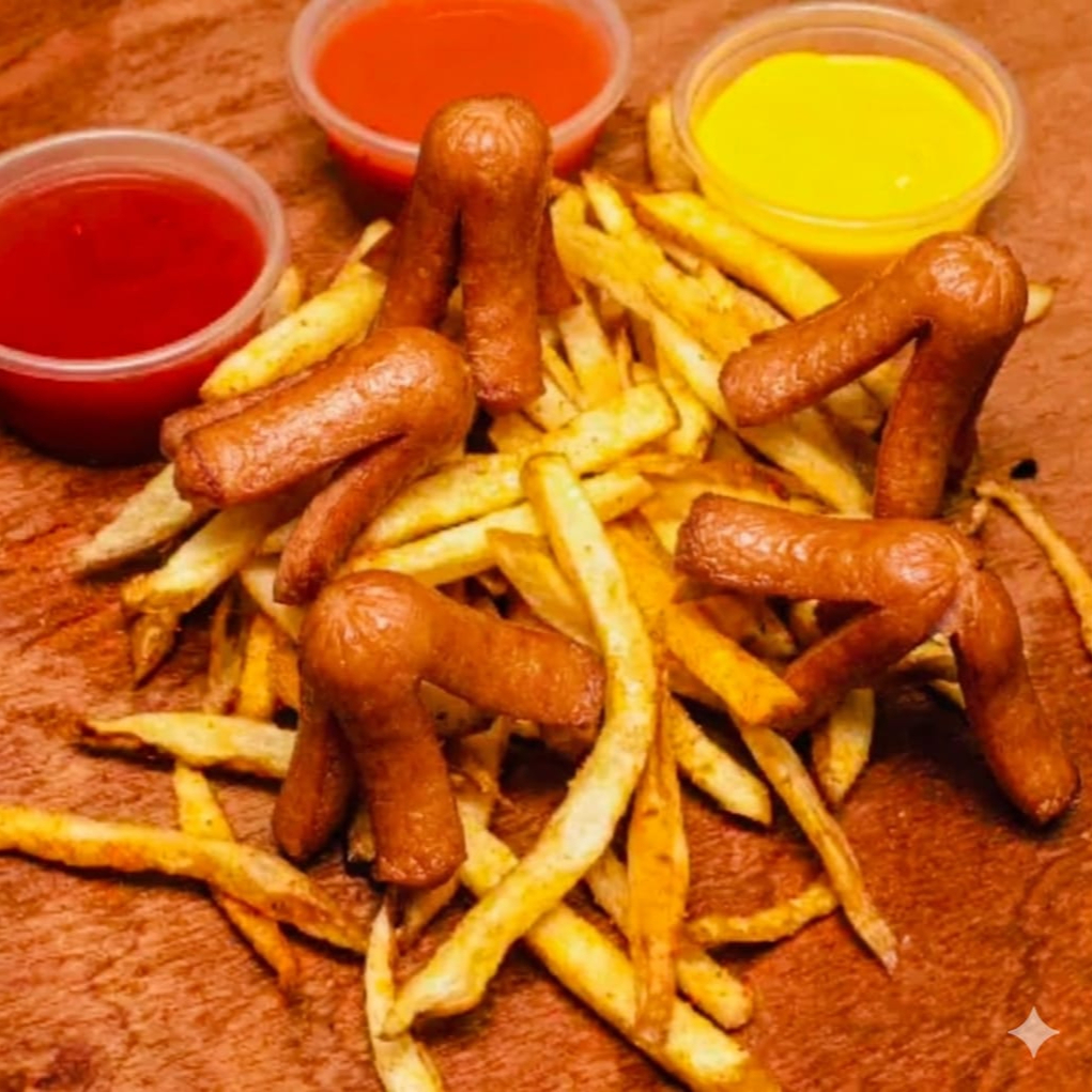 DELICIOSAS SALCHICAS DE PAVO EN TROZOS, CON PAPAS NATURALES A LA FRANCESA, FRITAS PREPARADAS CON TUS TOPPINGS FAVORITOS