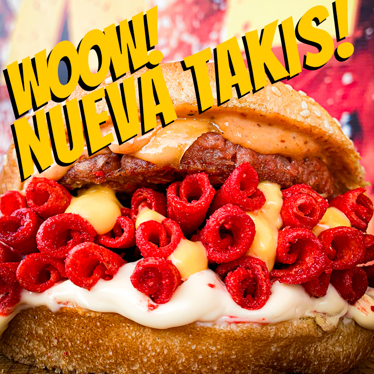 El sabor que te encanta de los takis ahora en una burger, lleva muchos takis con queso amarillo arriba la carne, pidela solo si soportas el sabor picante🔥⚡