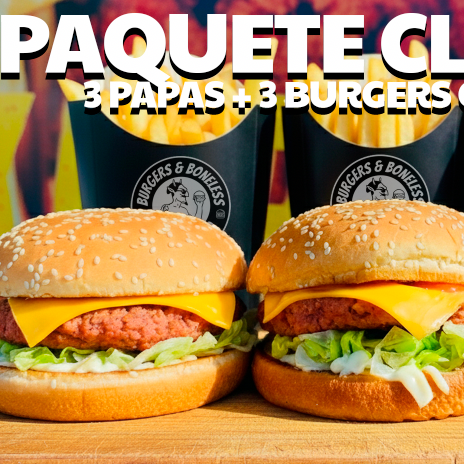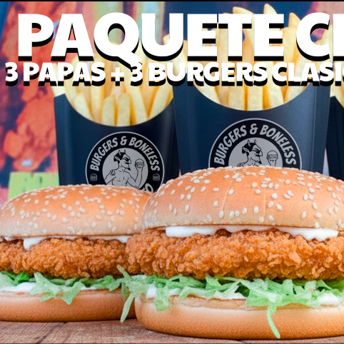 3 BURGERS DE POLLO + 3 PAPAS FRITAS