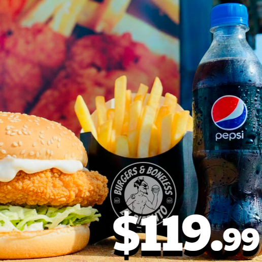 Super combo de Burger de Pollo, Papas Fritas y Pepsi