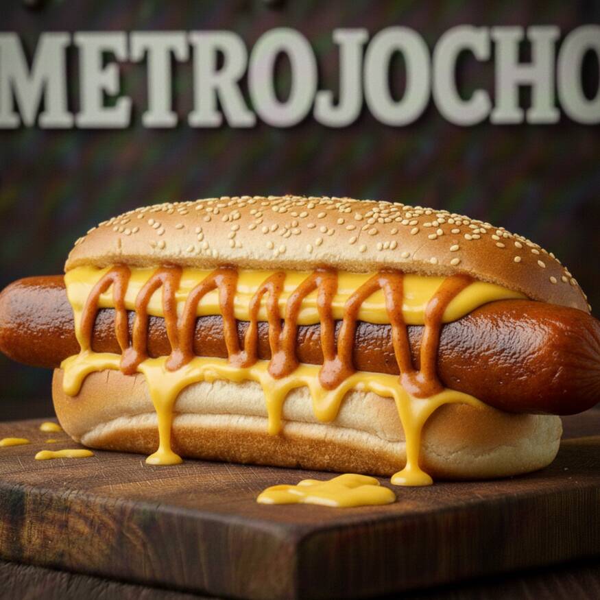 Salchicha estadio de 30 cms con queso amarillo y delicioso chipotle cremoso.