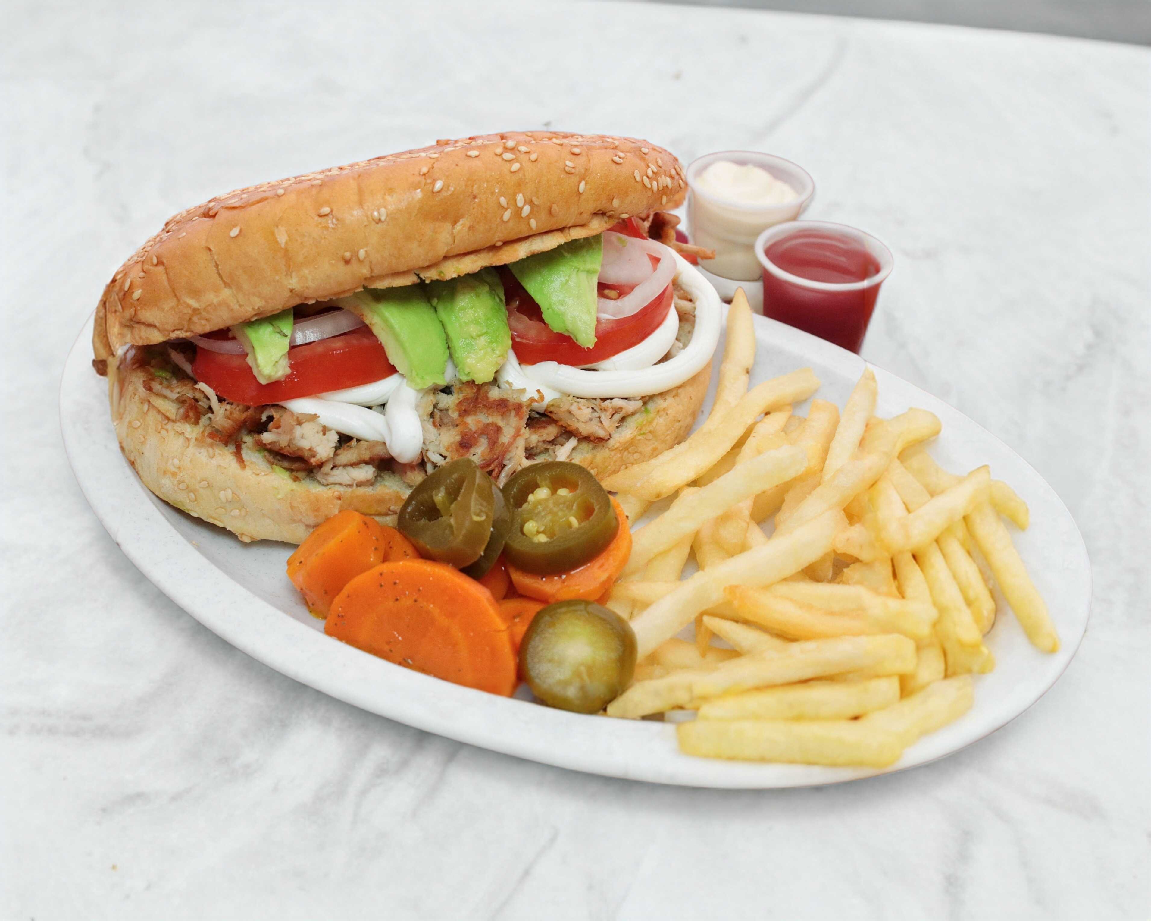 Acompañada de papas a la francesa.