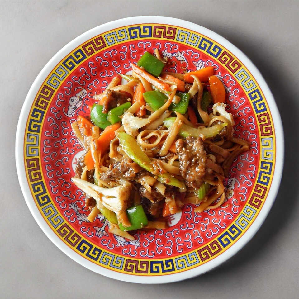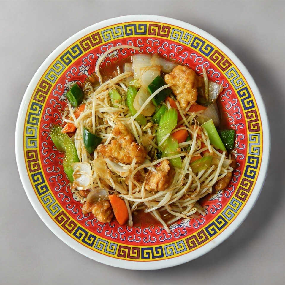Tallarines, zanahoria calabaza cebolla, pimiento verde, chayote, apio. (Incluye Arroz Frito)