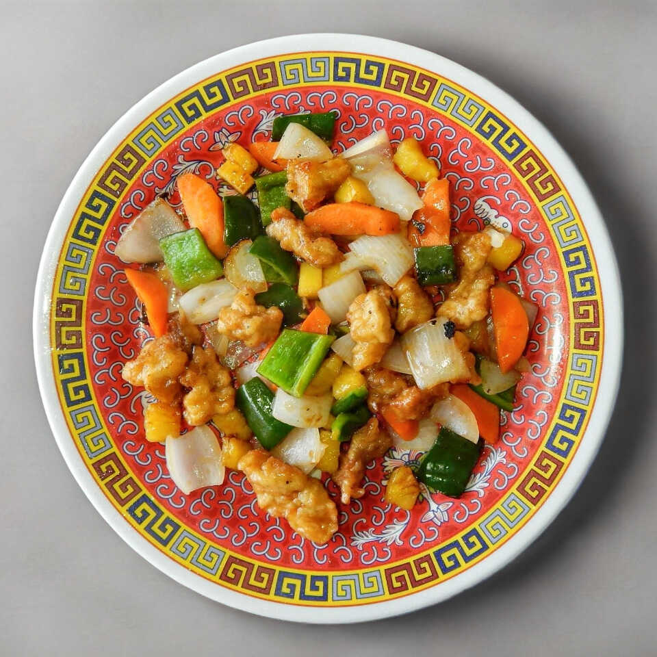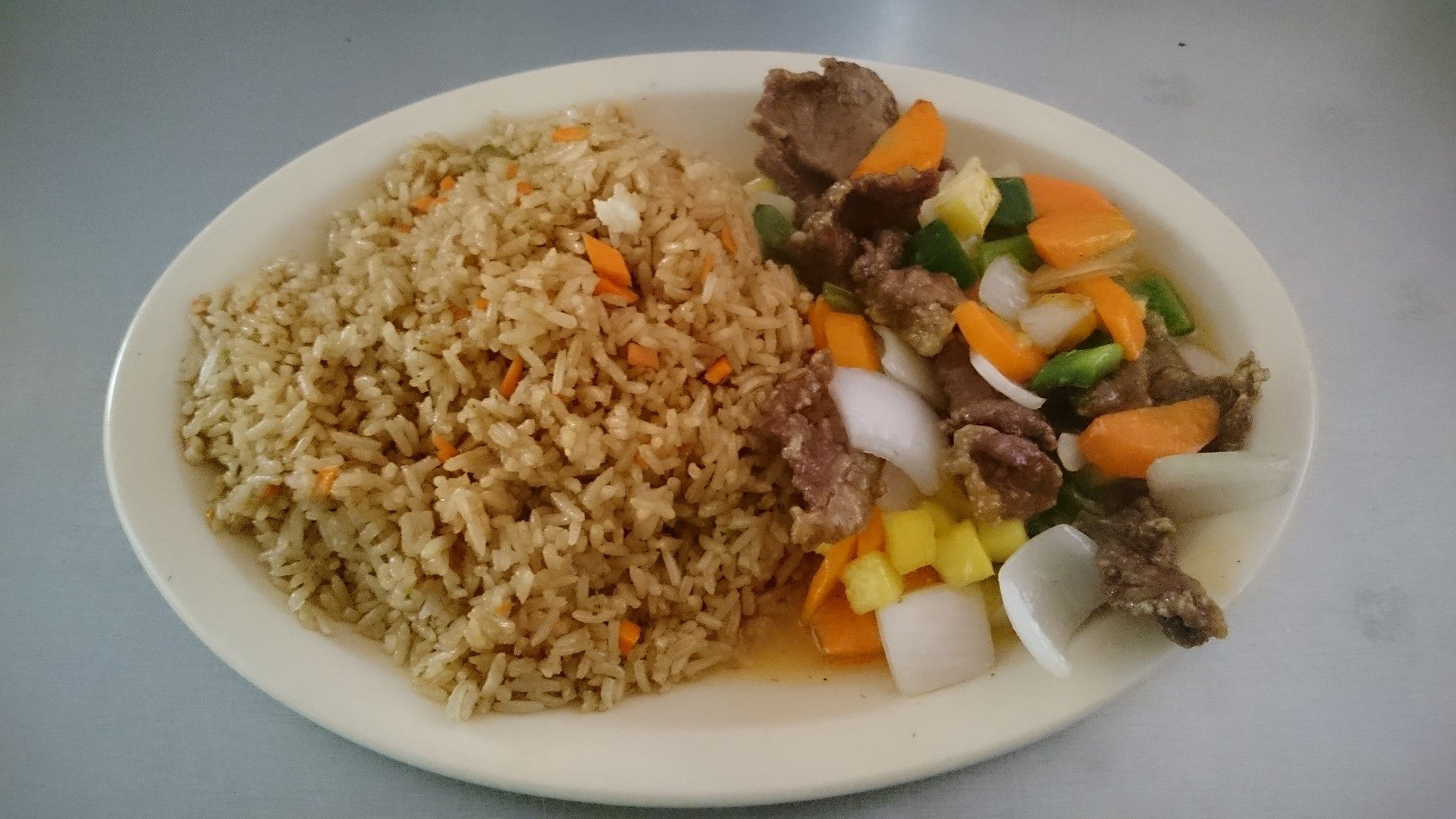 Zanahoria, pimiento verde, cebolla, chayote y piña. (Incluye Arroz Frito)