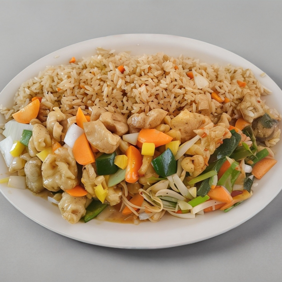 Zanahoria, pimiento verde, cebolla, chayote y calabaza. (Incluye Arroz Frito)