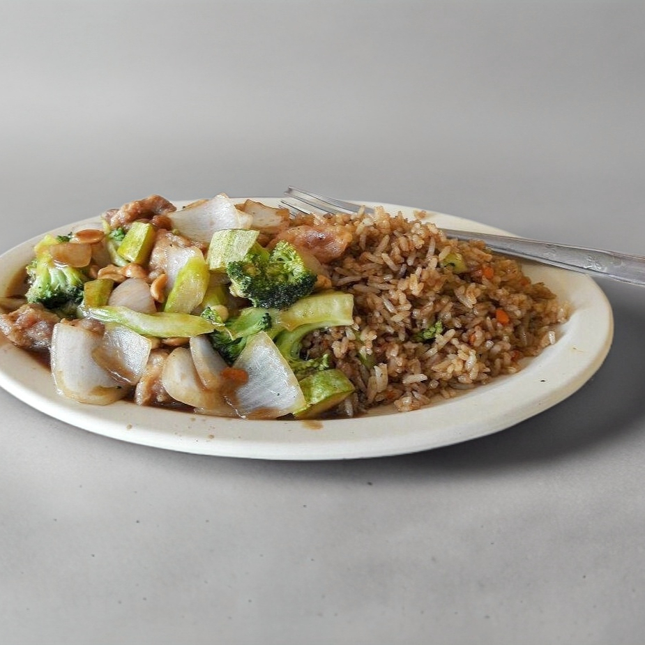 Brócoli, cebolla, calabaza, chayote, apio, cacahuate. (Incluye Arroz Frito)