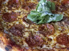 Deliciosa masa crujiente a la leña, pepperoni, queso mozzarella y marinara casera.