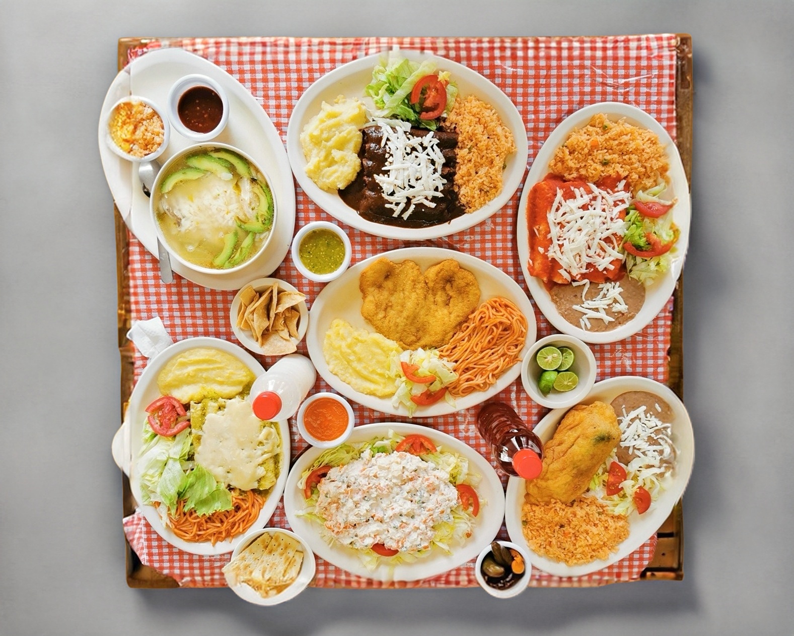 1 litro de caldo de pollo con aguacate, queso chihuahua, arroz y chile chipotle, incluye tortillas, salsa roja, limón, y cubiertos