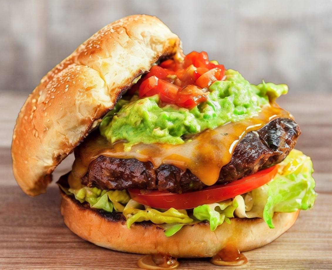 Doble carne de res, pan brioche, jamon , queso abundante guacamile , jslapeños aderezo especial