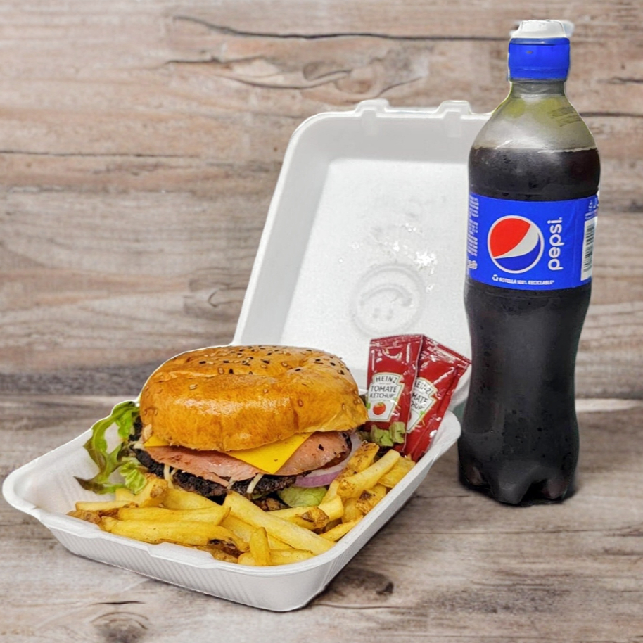 FAMOUS BURGUER*1 + Pepsi 355 ml*1 + Papas a La Francesa*1