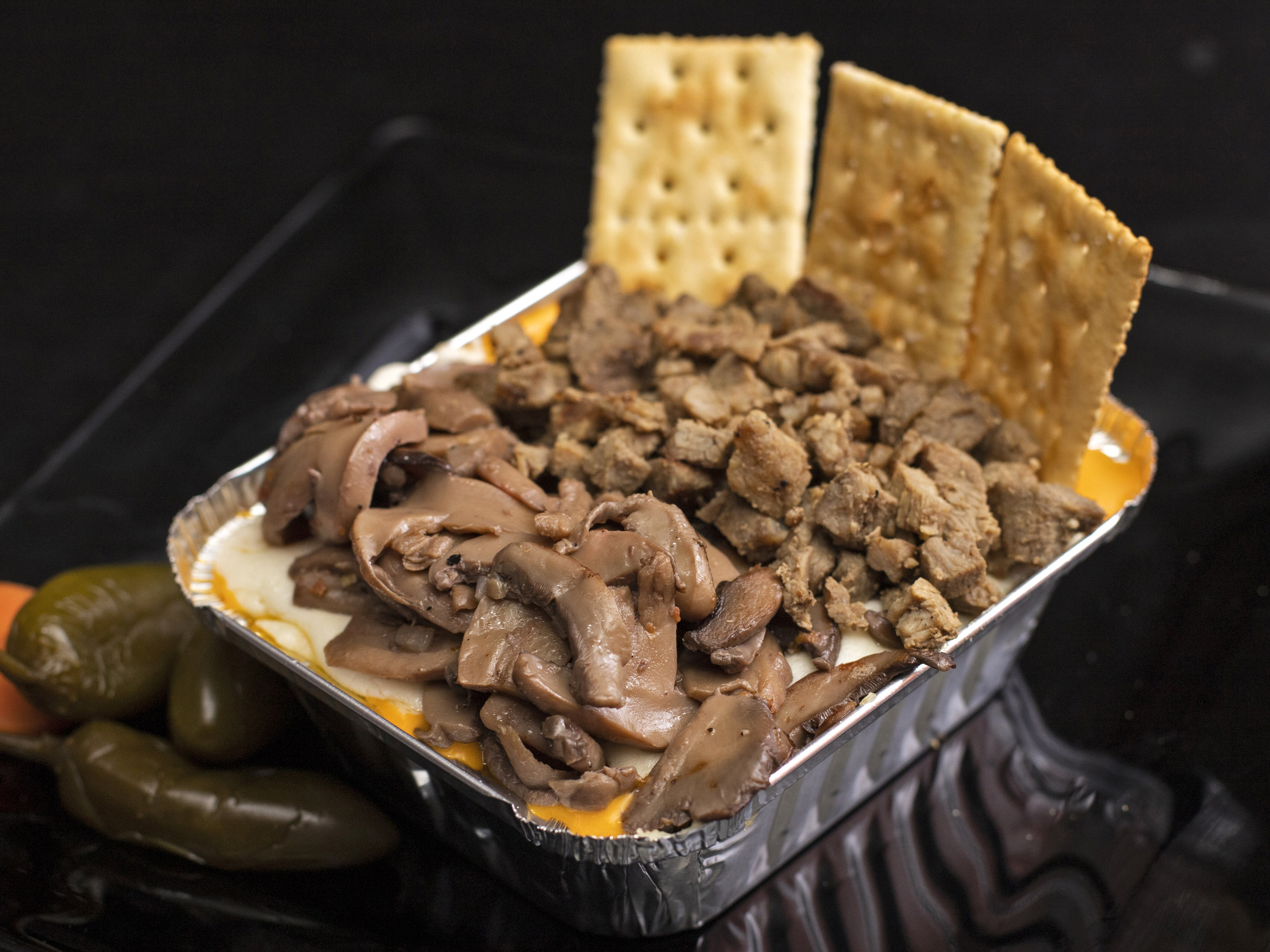 Deliciosa papa preparada con mantequilla, queso amarillo, crema, queso asadero y deliciosos trocitos de carne asada y Champiñones