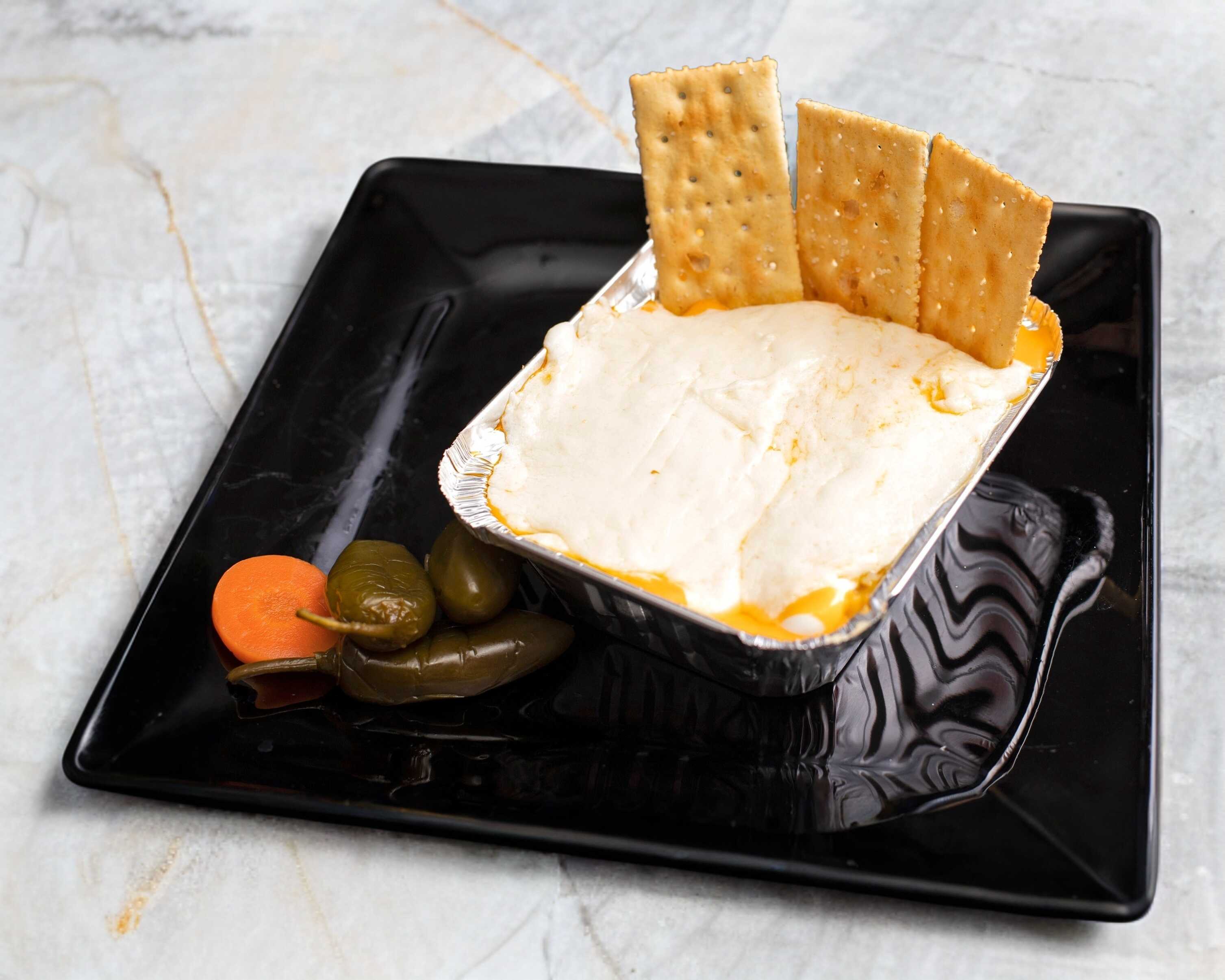 Carne casera con un delicioso chilito relleno de queso crema envuelto en tocino, jamón, queso asadero, guacamole, verduras y aderezos.