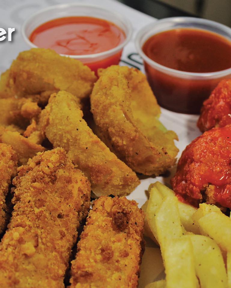 Acompañado de papas fritas más 2 guarniciones.
