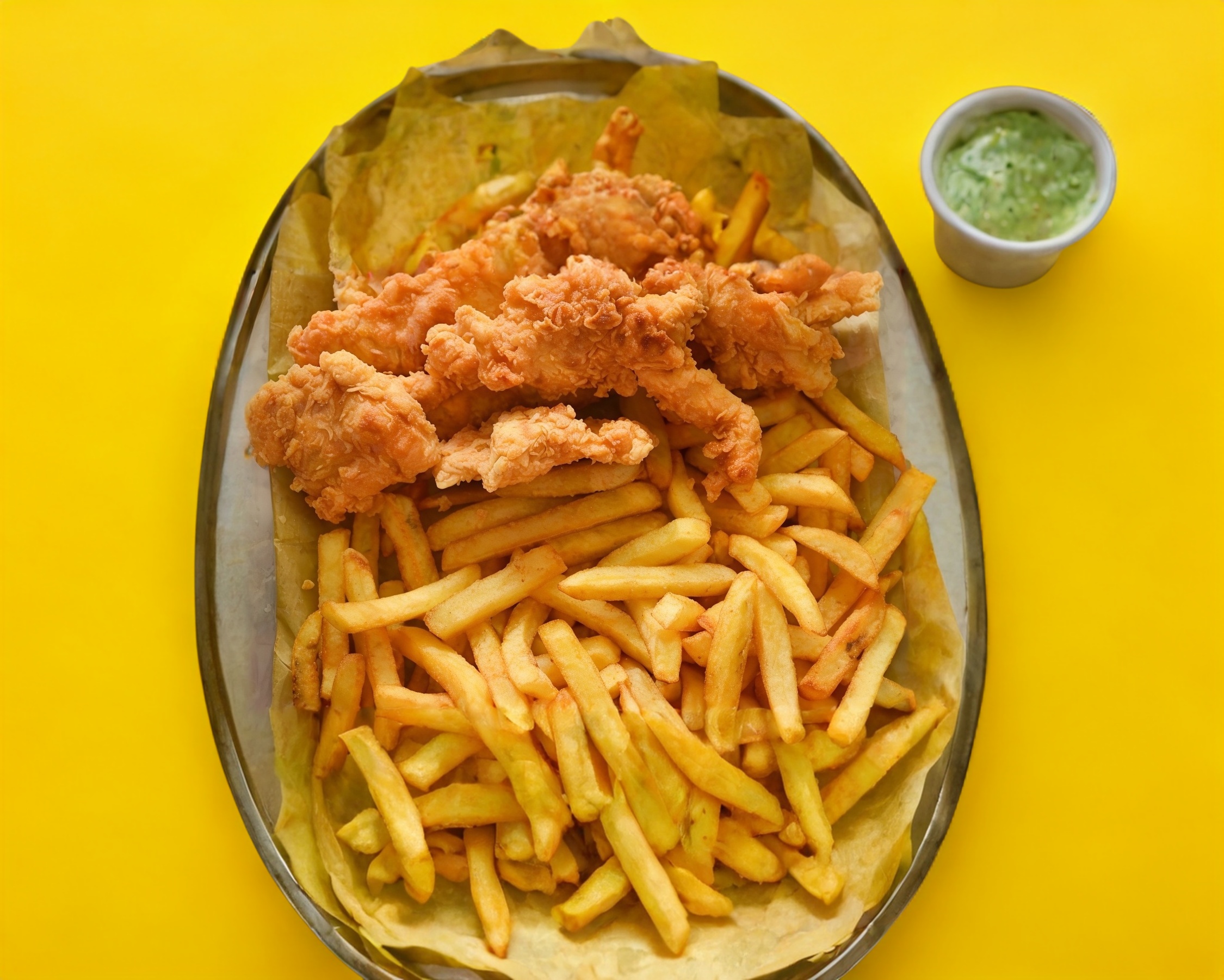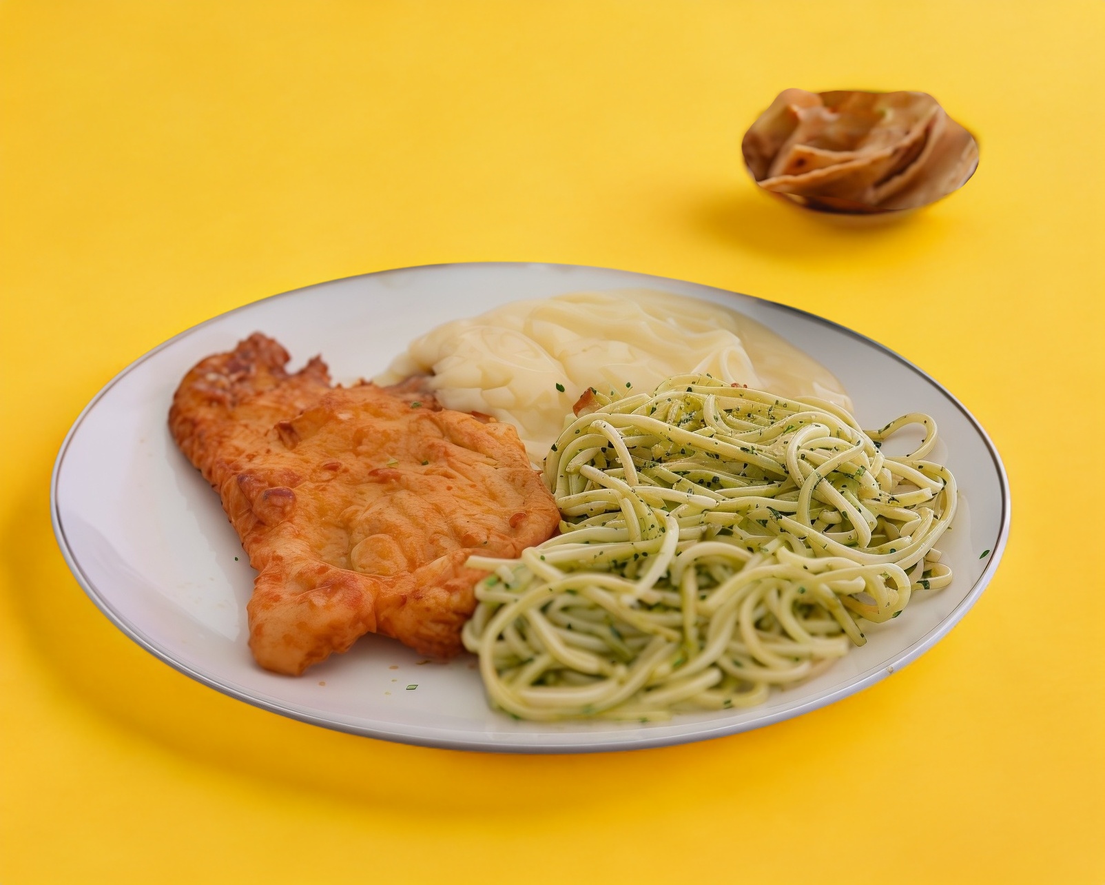 Milanesa de pollo empanizada, acompañada de 2 guarniciones a elección.