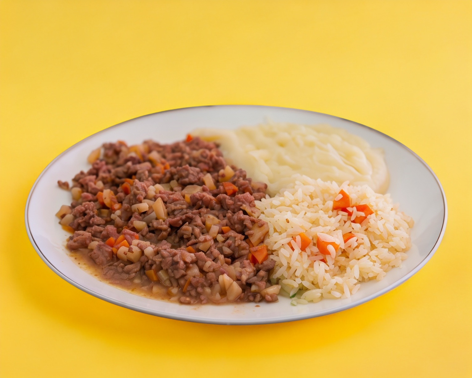 Carne molida con papas y zanahoria, acompañado de 2 guarniciones a elegir. (Porción personal).