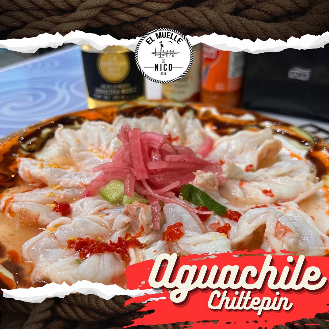 Camarón, pepino, tomate, cebolla, serrano, aguachile verde.