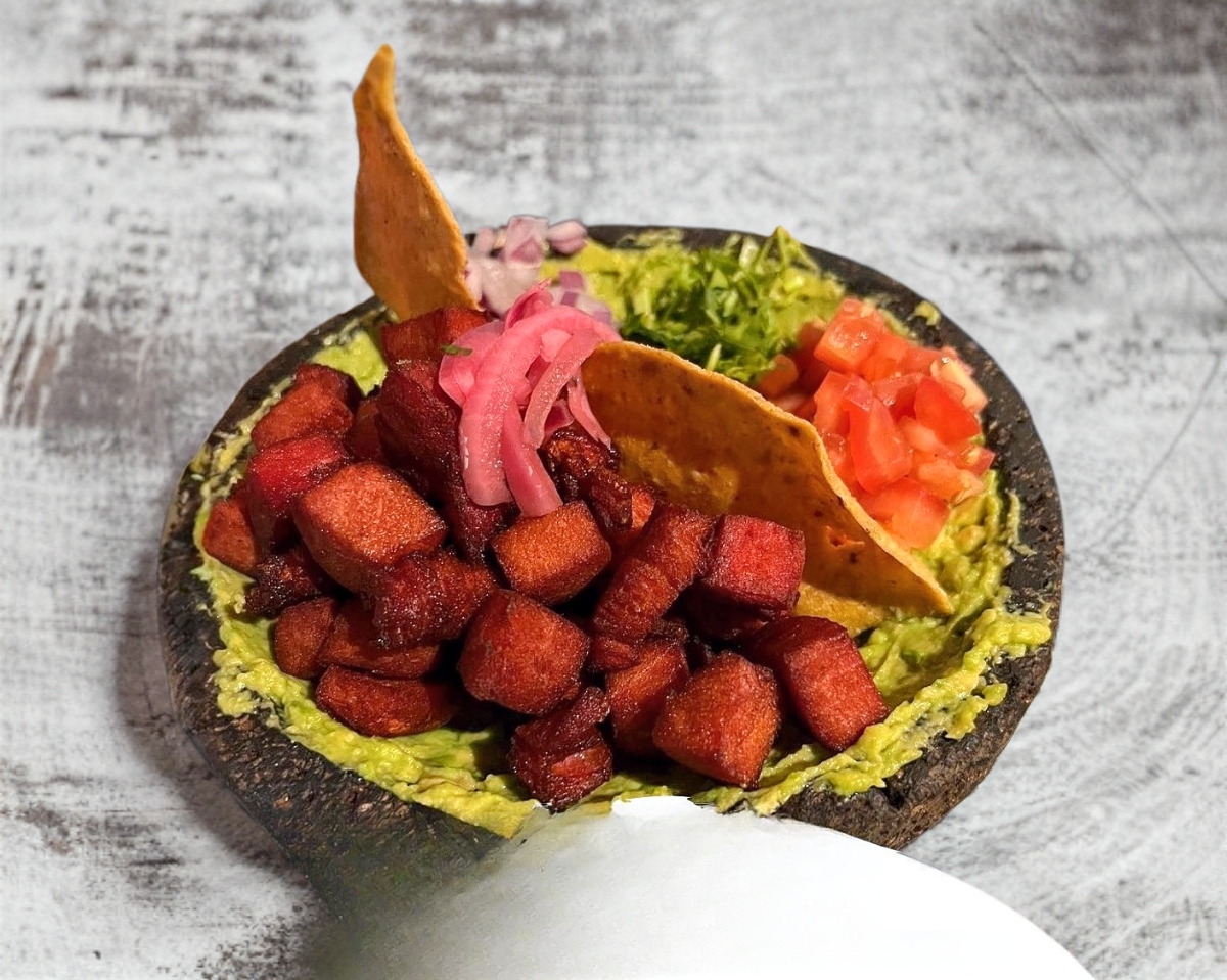 Guacamole, tomate, cebolla, serrano, cilantro.