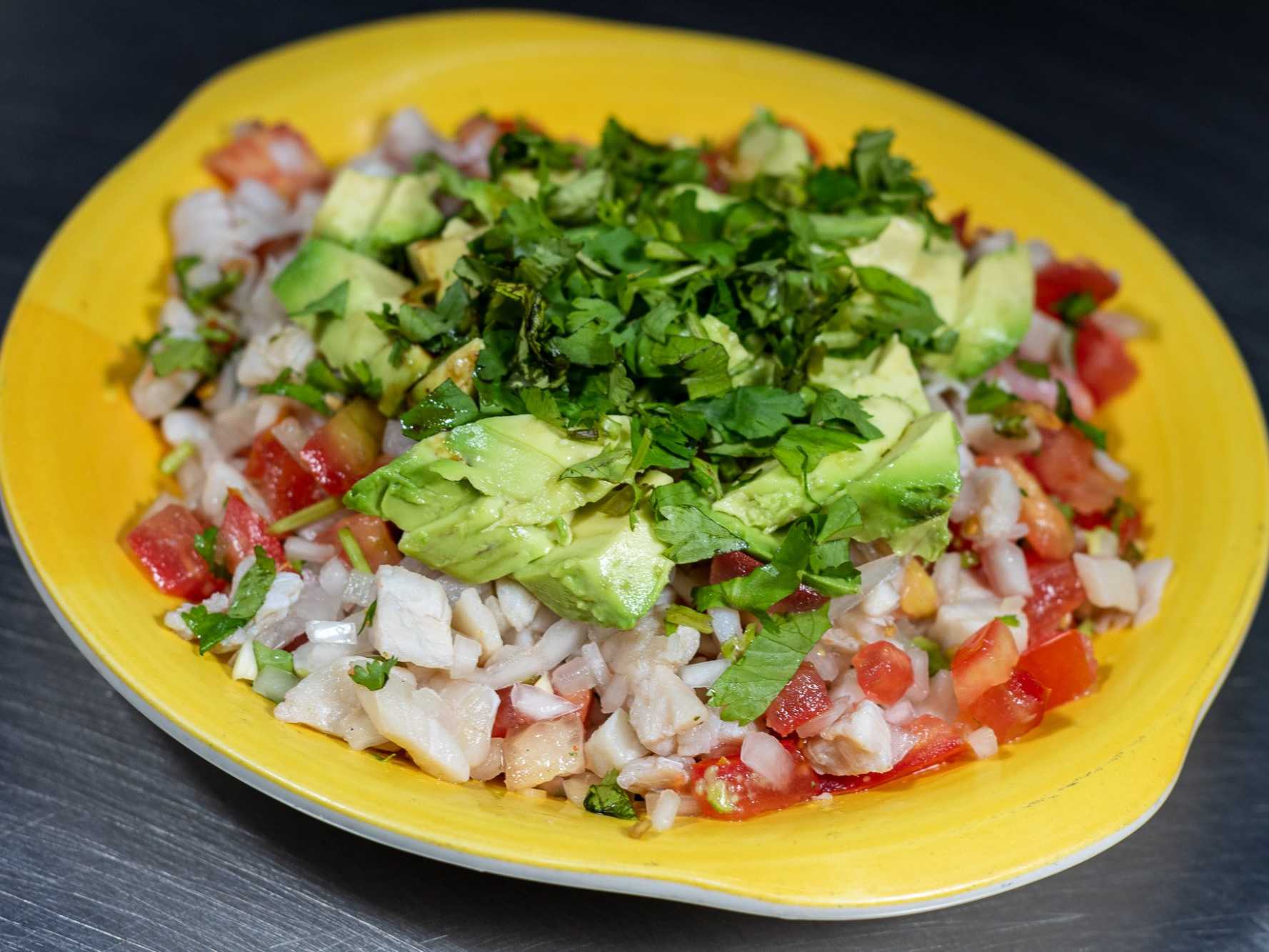 CEVICHE DE PESCADO CON TOMATE CEBOLLA CILANTRO AGUACATE