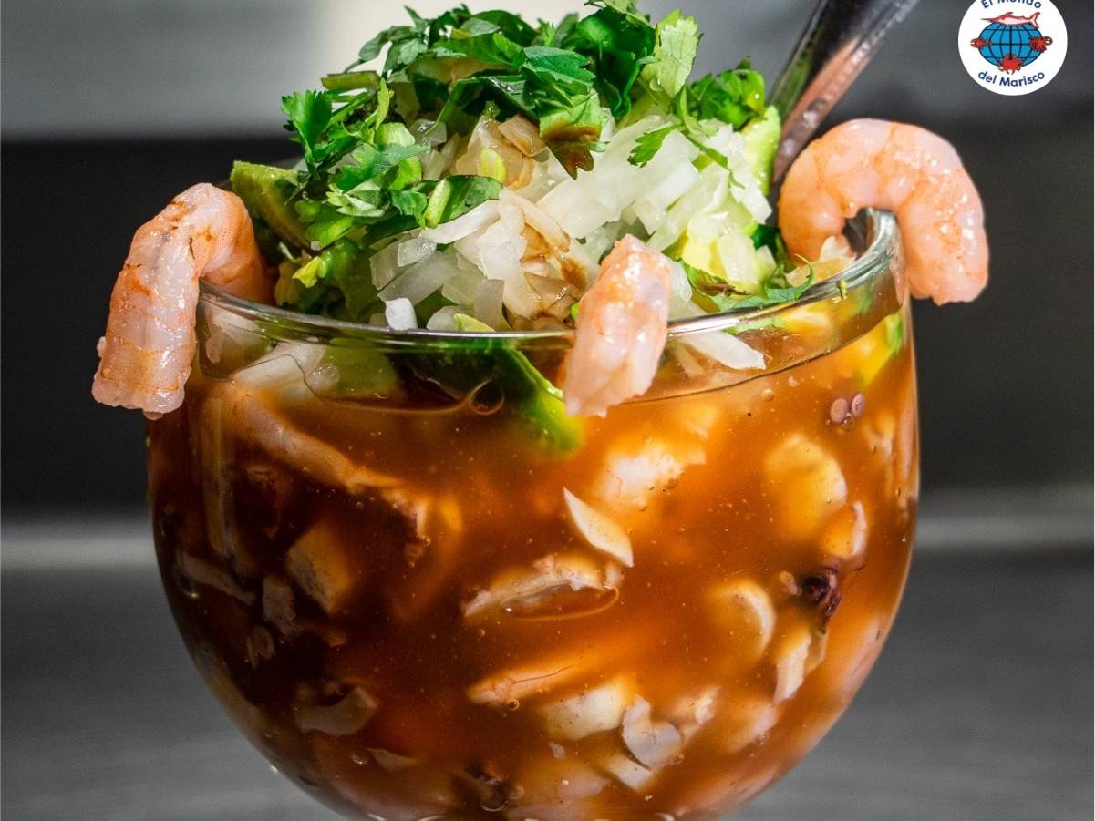 COCTEL PREPARADO A BASE DE 2 PRODUCTOS ( CAMARON- PULPO O CAMARON- OSTION ) CASUP AGUACATE CEBOLLA CILANTRO EN UN VASO DE 16 OZ