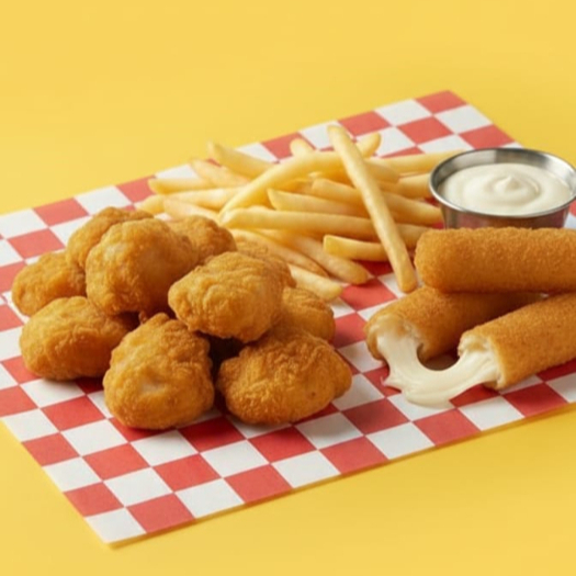 200gr. de boneless, 4pz. de dedos de queso y papas a la francesa.