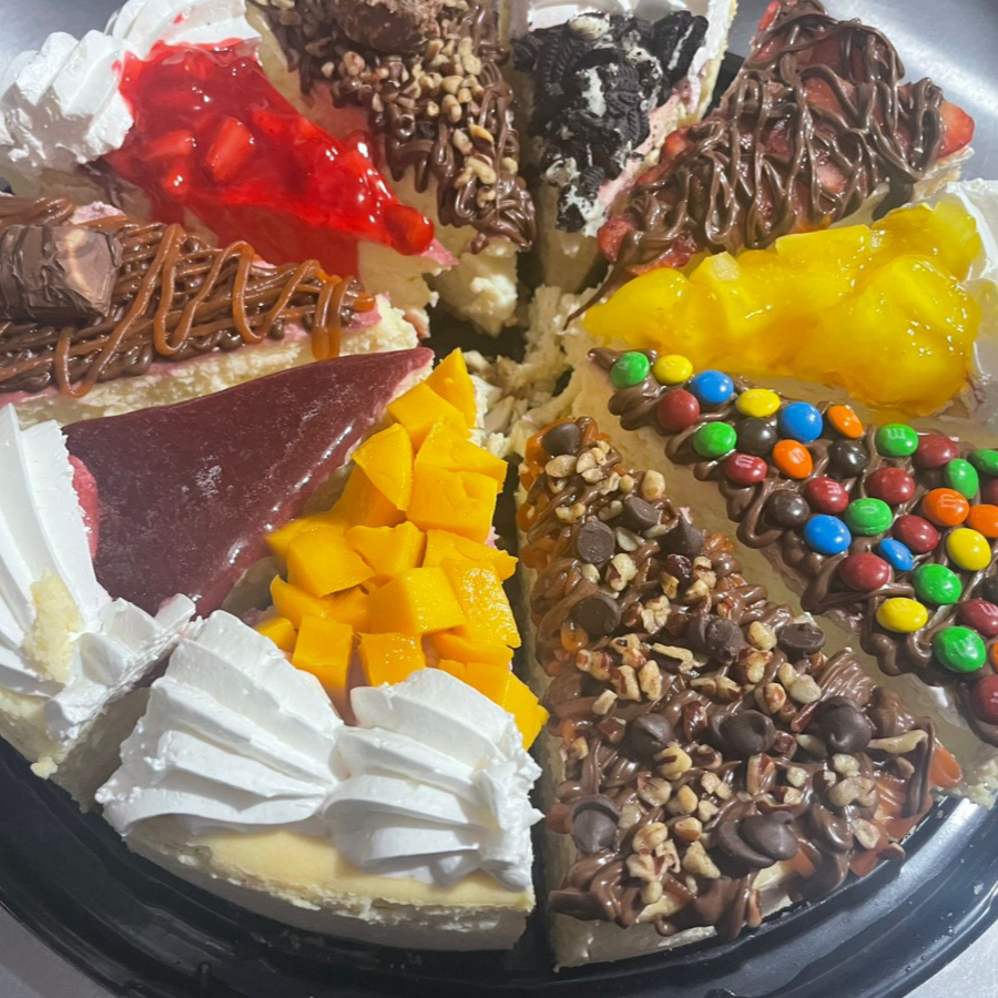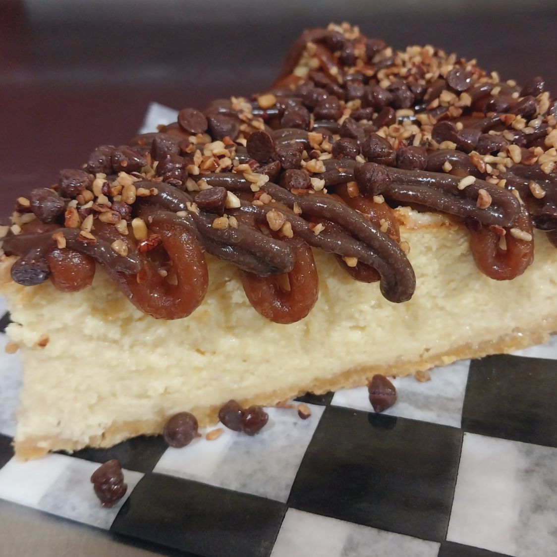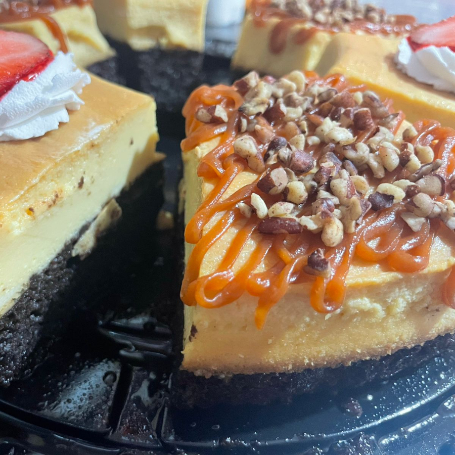 Chesse Cake New York con base de galleta Maria, pastel de queso, cubierto con Nutella, nuez y chocolate Ferrero Rocher.