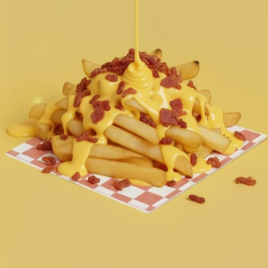 Cama de papas a la francesa con trocitos de boneless bañados en queso, aderezo ranch y salsa de tu elección.