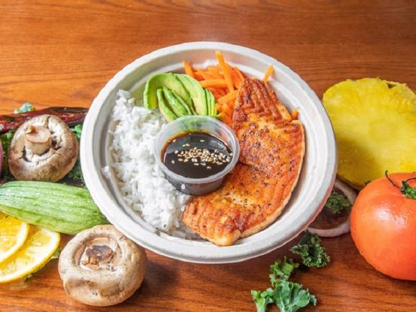 Pollo, brócoli, zanahoria, calabacita, ajonjolí, aderezo oriental.