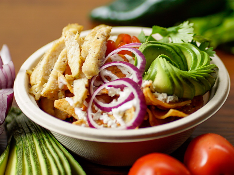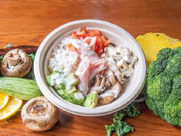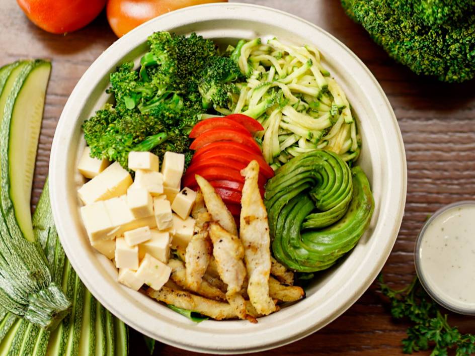 Pollo, brócoli, calabacita, tomate, aguacate, queso, chihuahua, aderezo ranch.