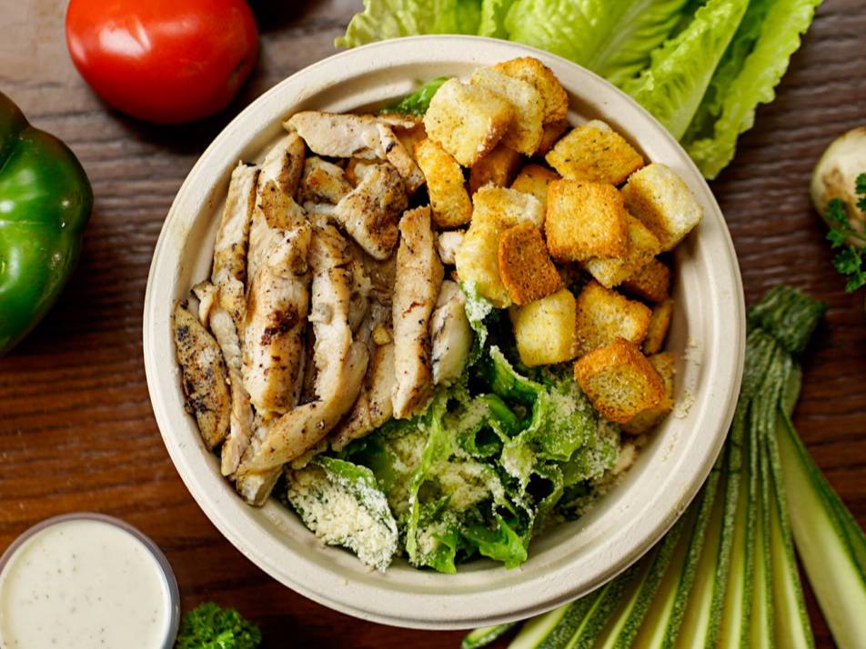 Pollo, queso parmesano, crutones, aderezo cesar.
