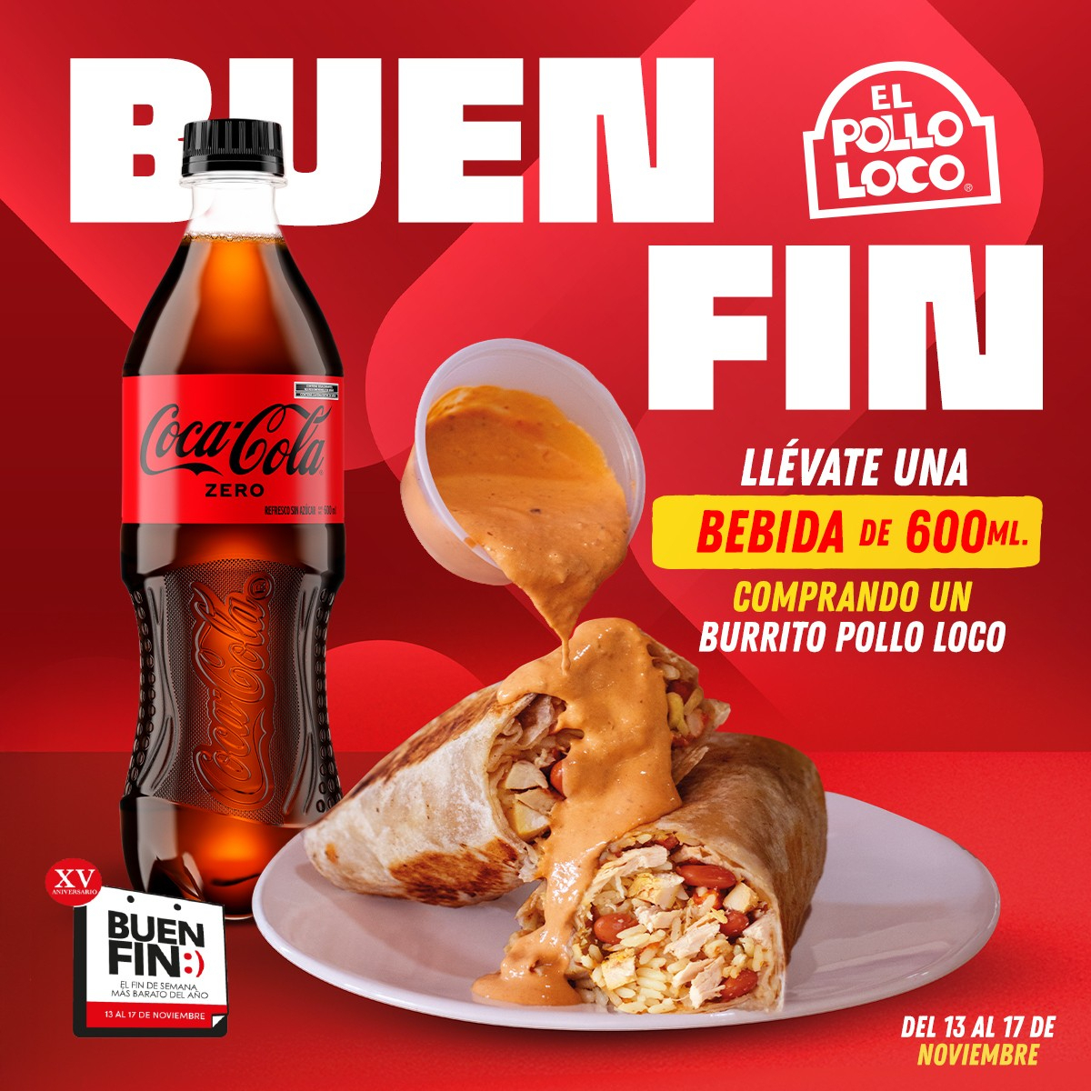 En la compra de Burrito Pollo Loco llévate una bebida de 600 ml gratis