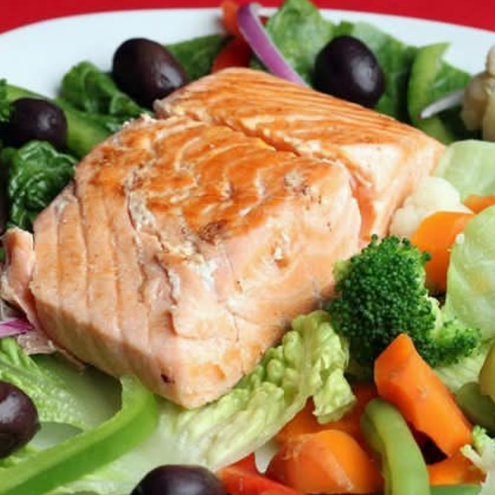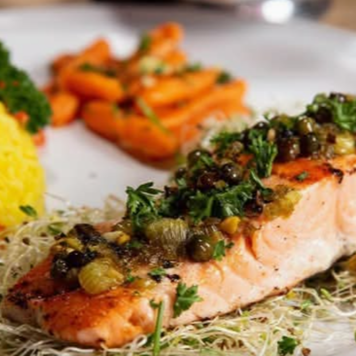 Salmón a la plancha con salsa piquín de limón con chile piquín.