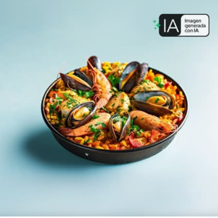 Salmón a la plancha con crema paprika, surimi, camarón y pulpo.