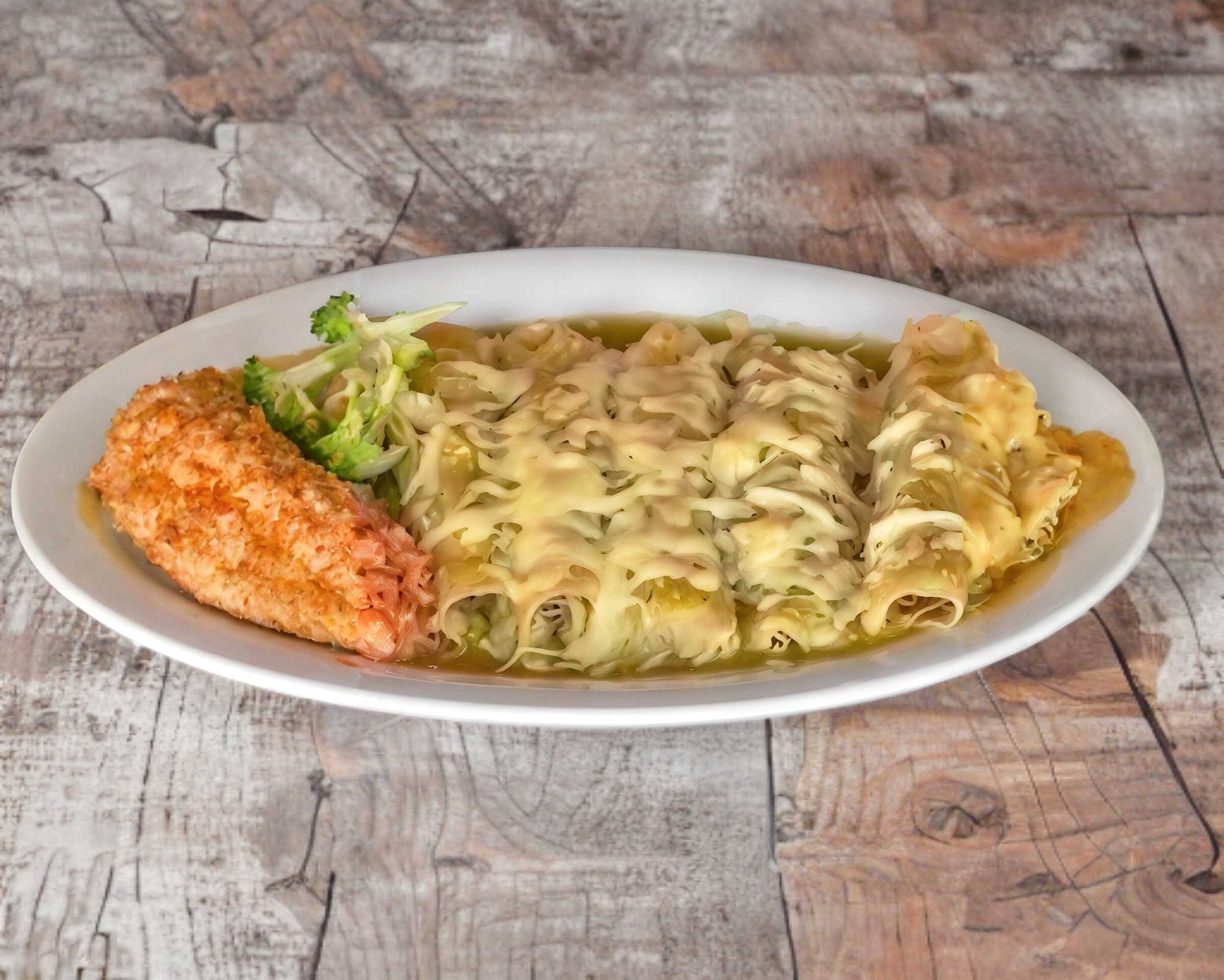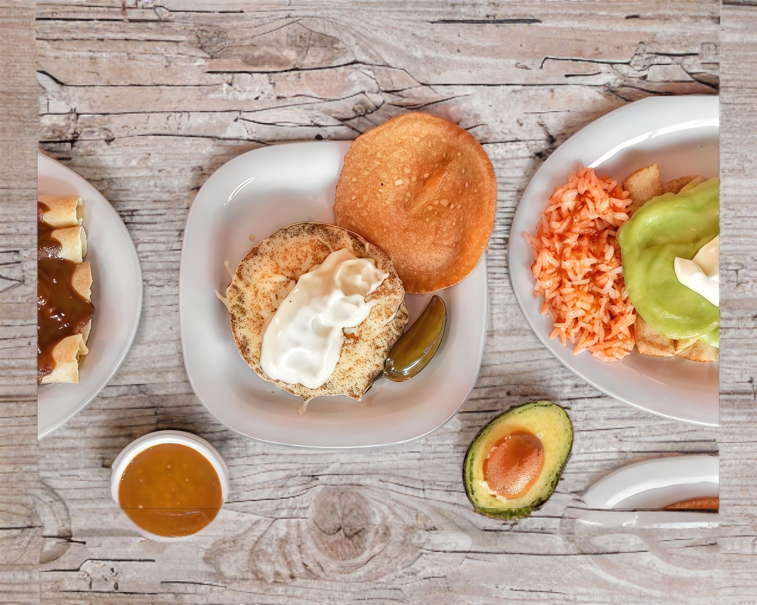 Pechuga de pollo, crema y guacamole. (Porción personal)
