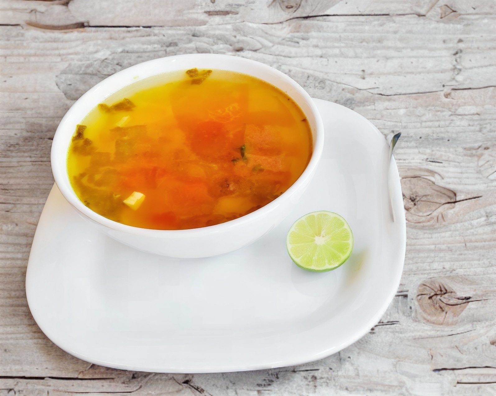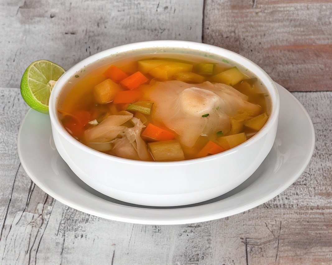 Medio Litro de Consomé*1 + Tostada chica*1 + Taco grande*1