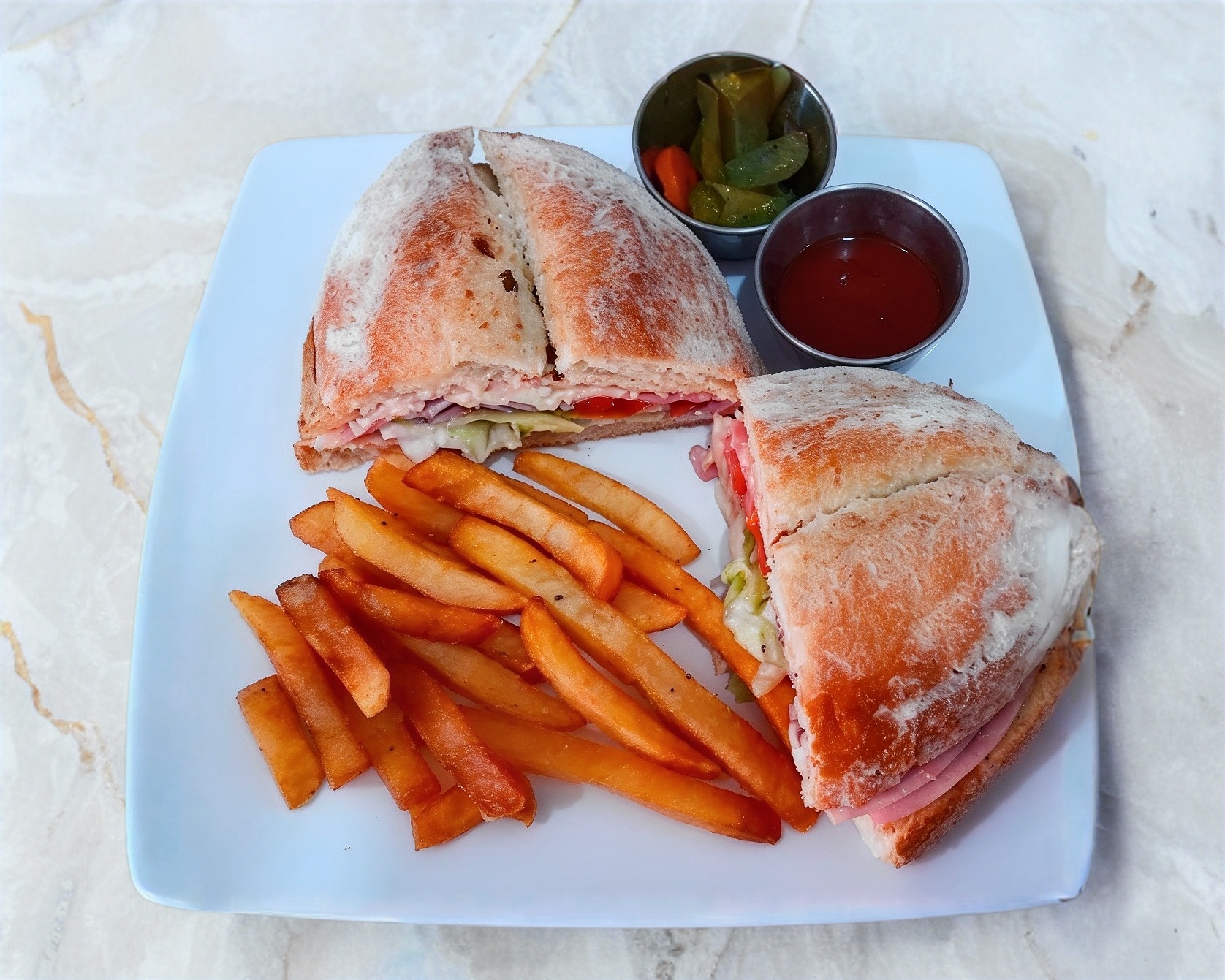 SANWICH DE JAMÓN ESPECIAL CON PAPAS A LA FRANCESA