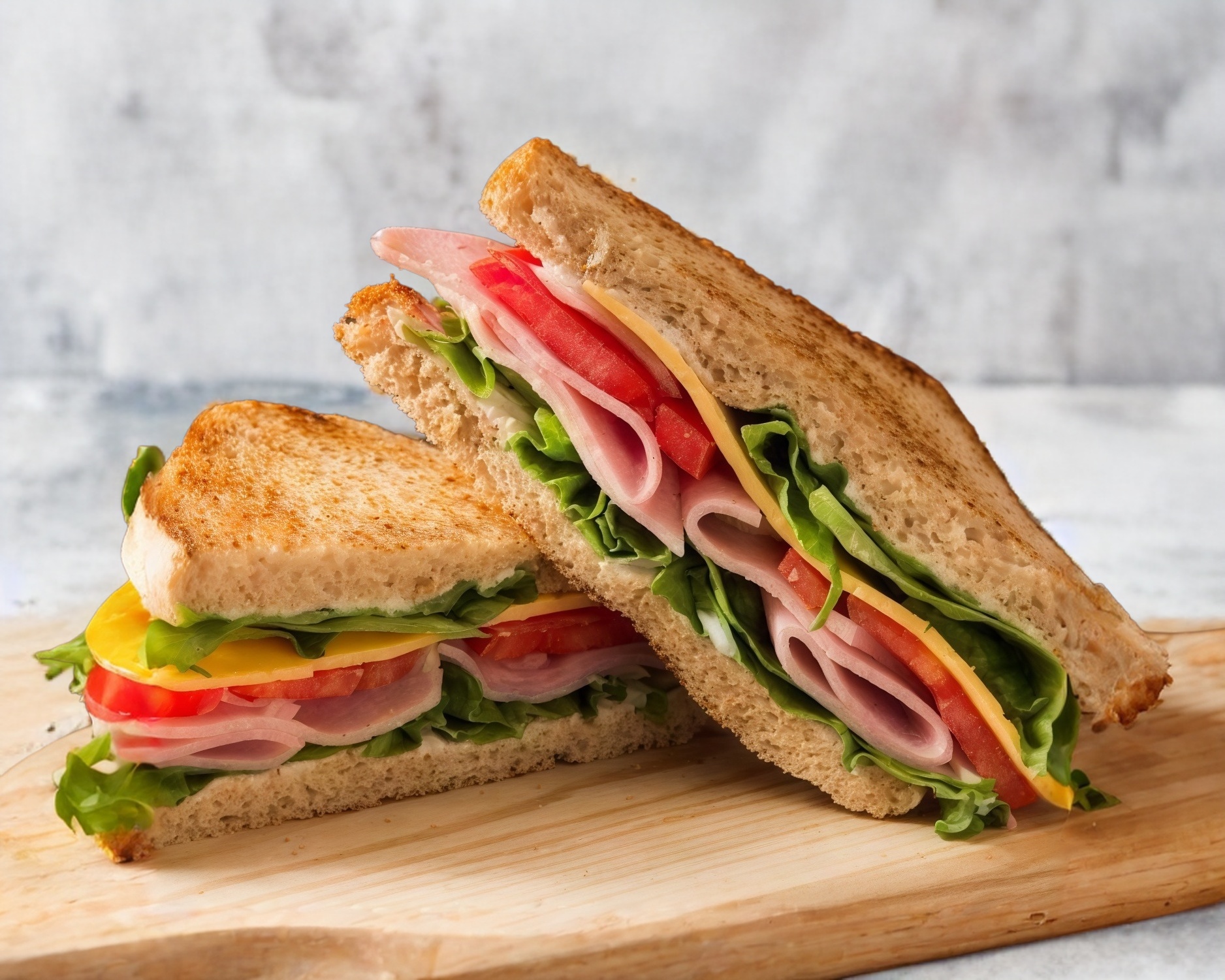 Pan integral, con mayonesa, aguacate, queso, jamón, tomate y lechuga.