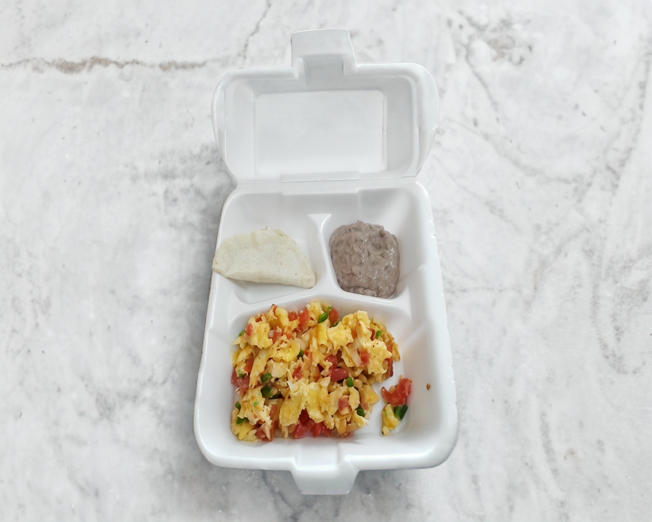 Delicioso desayuno 100% casero, incluye 2 Huevos revueltos con pico de gallo, acompañados de frijoles refritos y 2 sabrosas quesadillas. en tortilla de maíz.