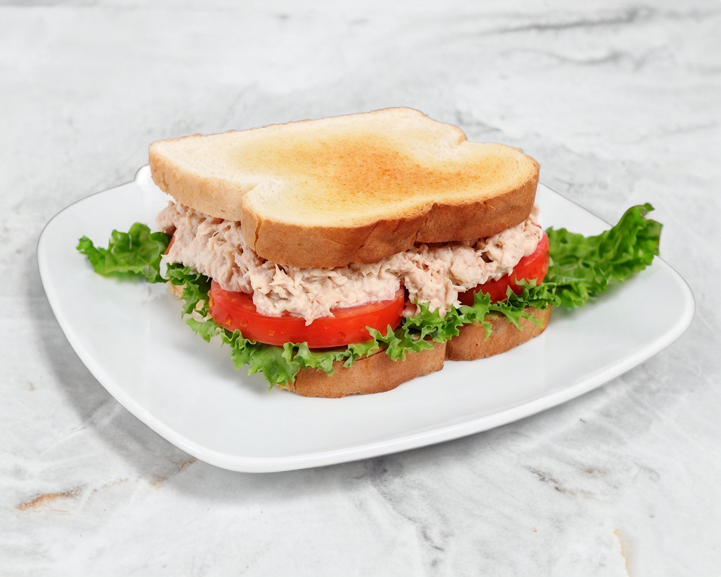 Delicioso sandwich a la plancha en pan integral o de linaza, con ensalada de atún en mayonesa, tomate, lechuga.