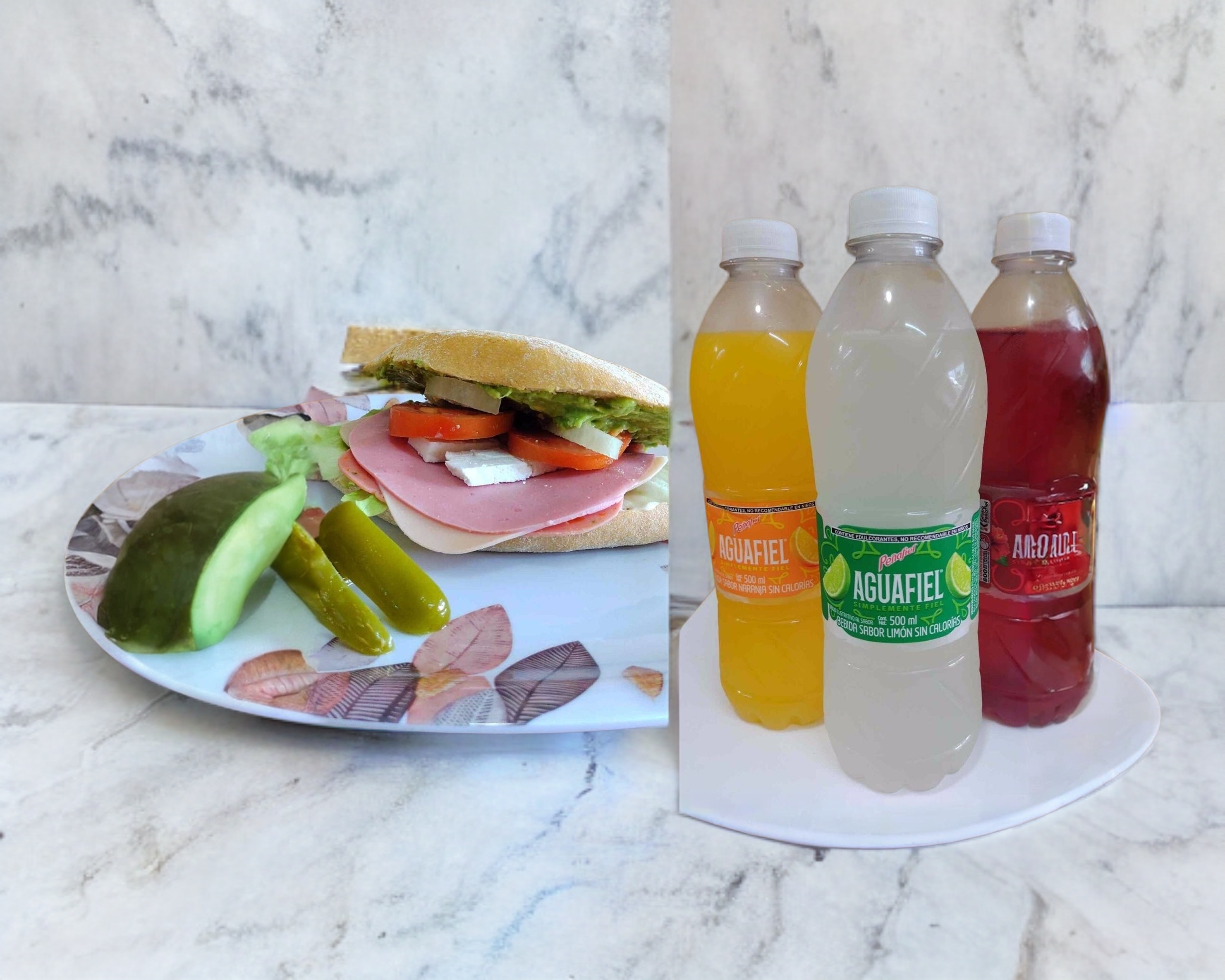 Torta de Carnes Frías*1 + Agua de Jamaica 500 ml*1