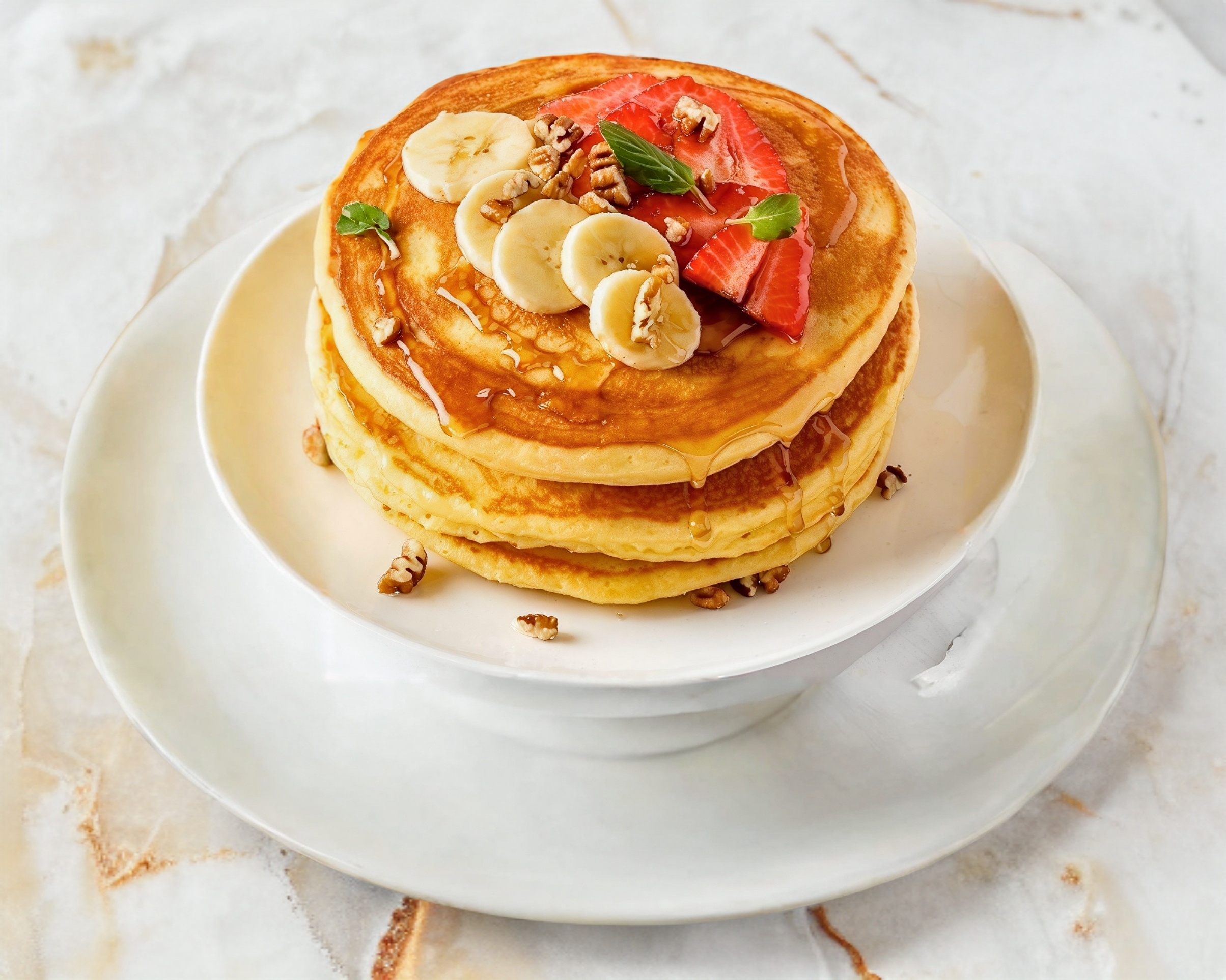 3 piezas de Hot cakes con avena 100% caseros acompañados de miel de maple. Agrega tú Fruta.