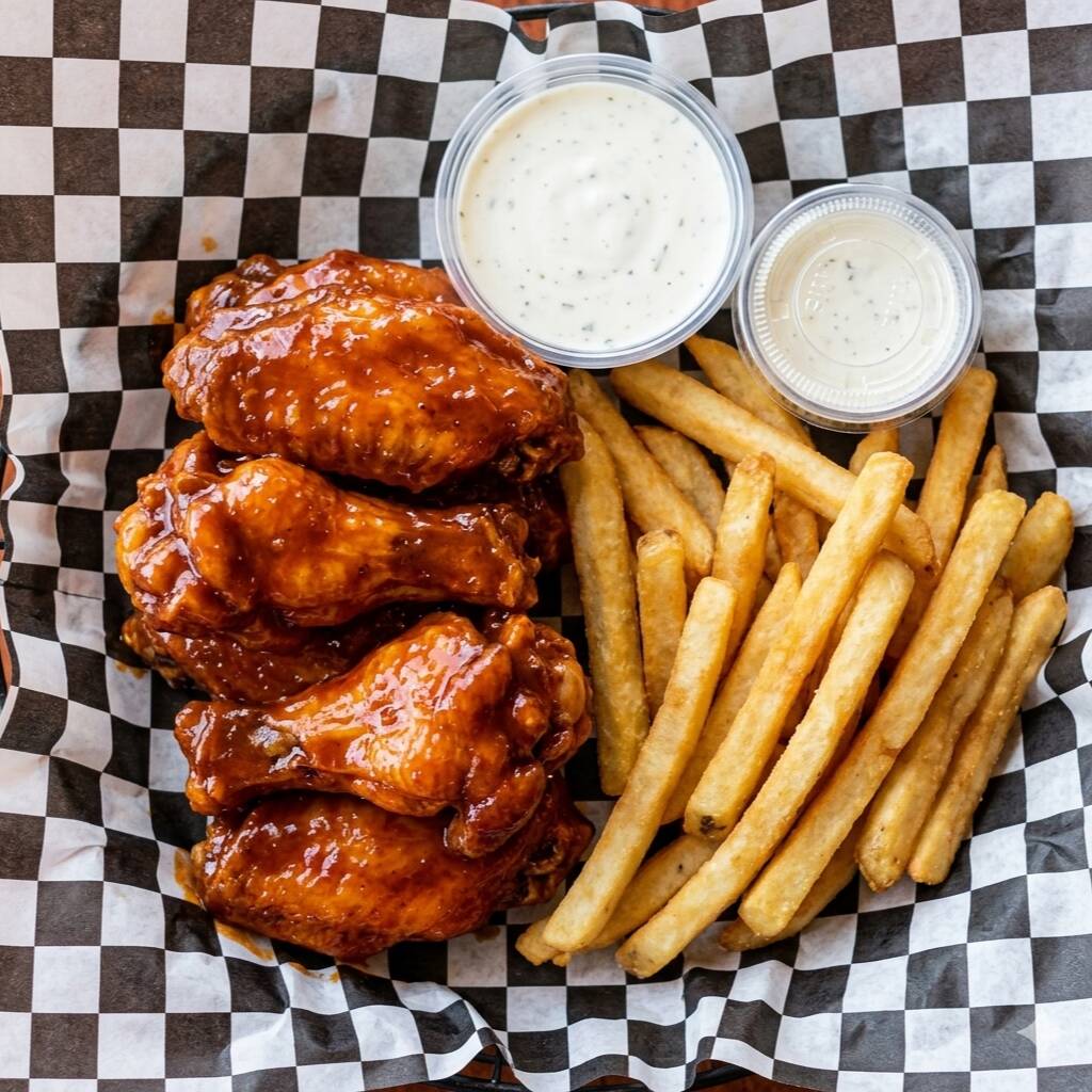 Alitas individuales porcion jr cortesia de papas fritas bajo exitencia escoje tu salsa.