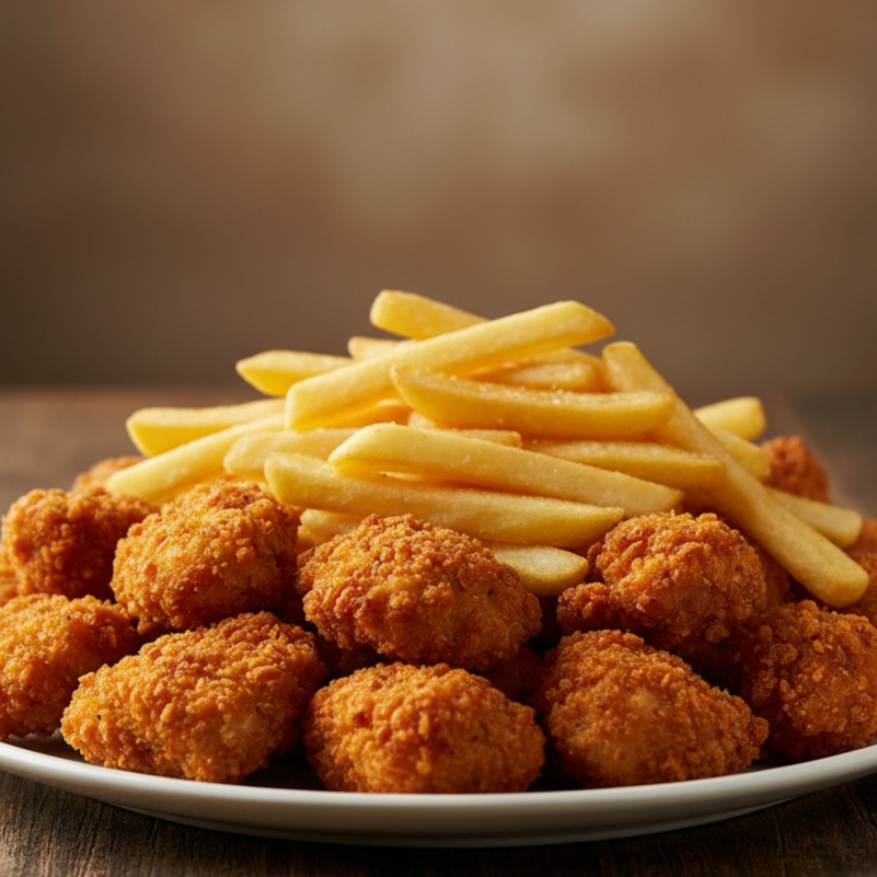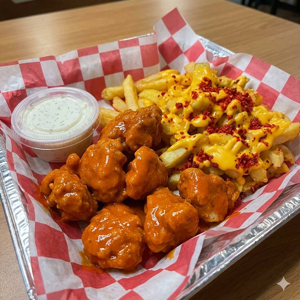 1 porcion individual de papas con queso 1 porcion boneless