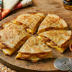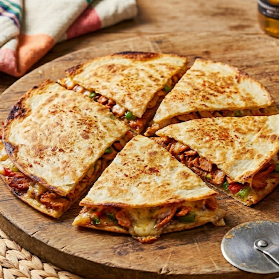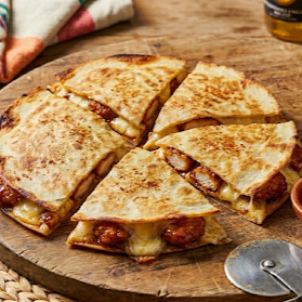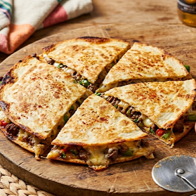 Pizza taco 2 tortillas de harina con Boneless y queso.
