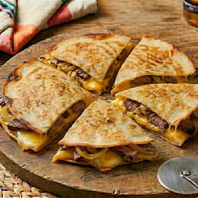 Pizza taco 2 tortillas de harina con carne y queso.