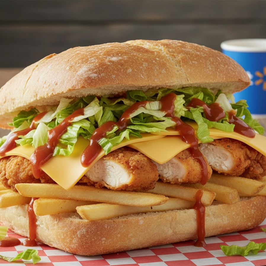 Pan de Telera con boneless, papas fritas, lechuga, queso amarillo, aderezo ranch.