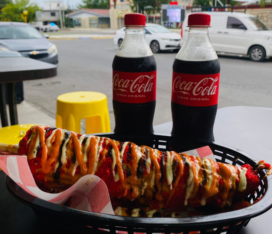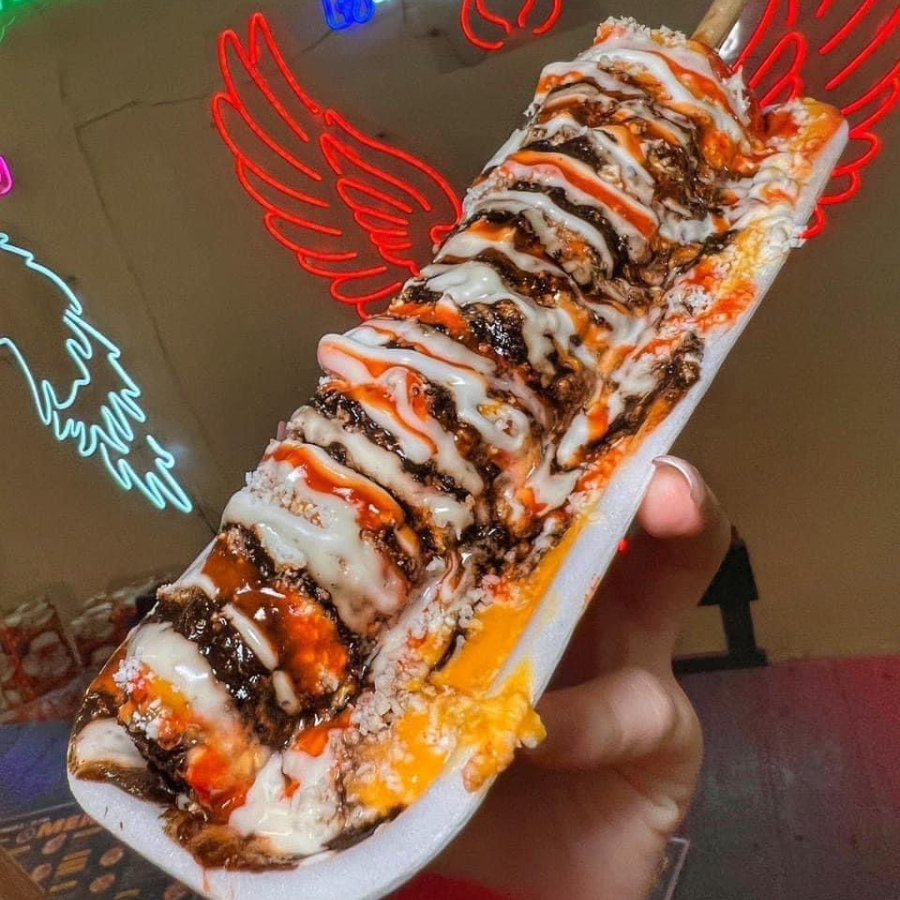 Elote entero bañado en 2 salsa de tu preferencia y decorado con ranch o bluechesse