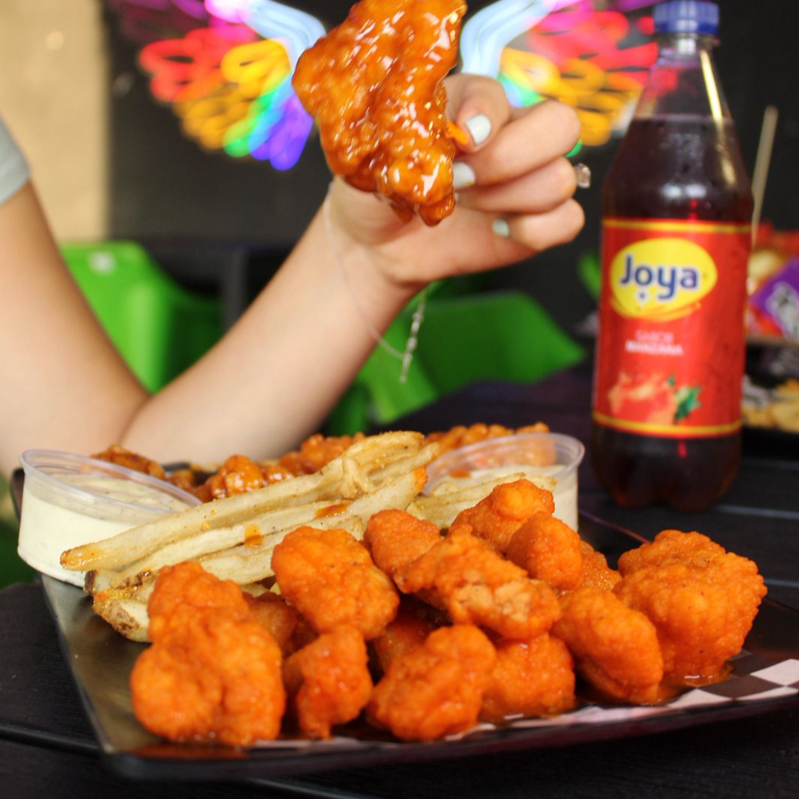 Generosa porción de boneless de pollo con el toque picante o dulce de tu elección.