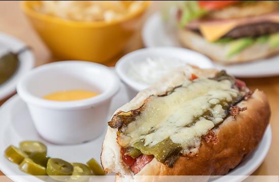 Carne top sirloin, queso gratinado, cebolla asada, chile chilaca tatemado en rajas, tomate, lechuga, mayonesa, mostaza y cátsup.